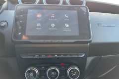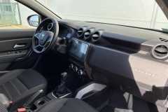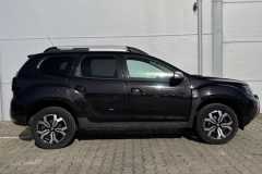Tapicerka materiałowa w kolorze czarnym z białymi przeszyciami i logiem Duster